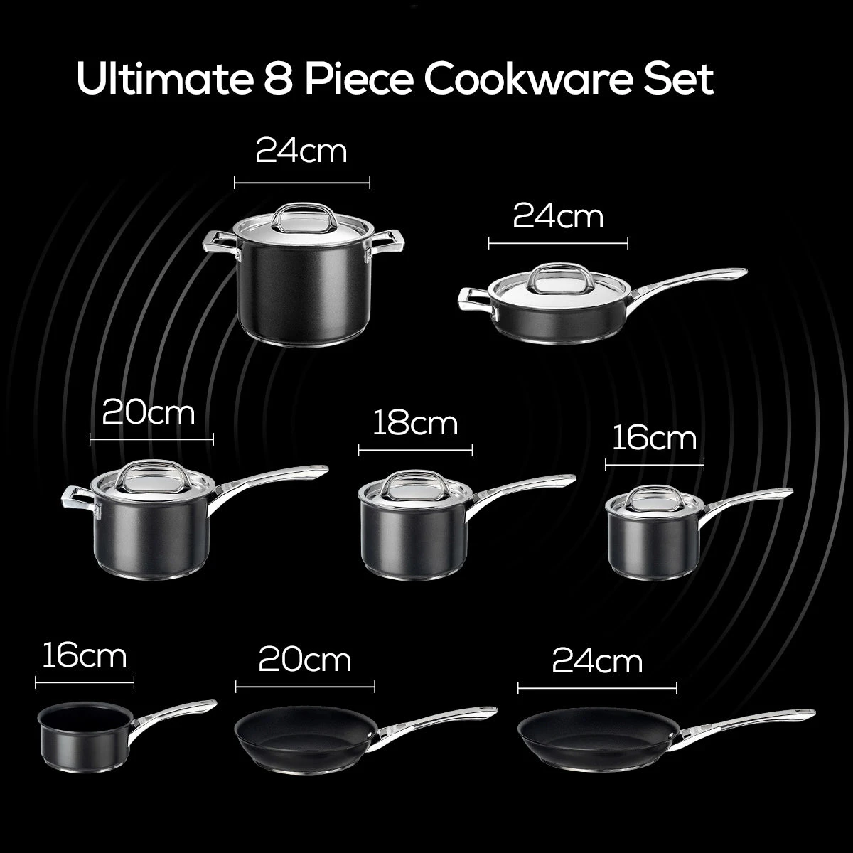 Get the complete Induction Pan Set for the family kitchen with our website exclusive, Circulon Infinite Ultimate Non-Stick Induction Saucepan, Skillet Frying Pan & Sauté Complete Pan Set with 8 Pieces. Suitable for all kitchens and stovetops, including Gas, Electric and Induction Hobs with a complementary Lifetime Guarantee.
