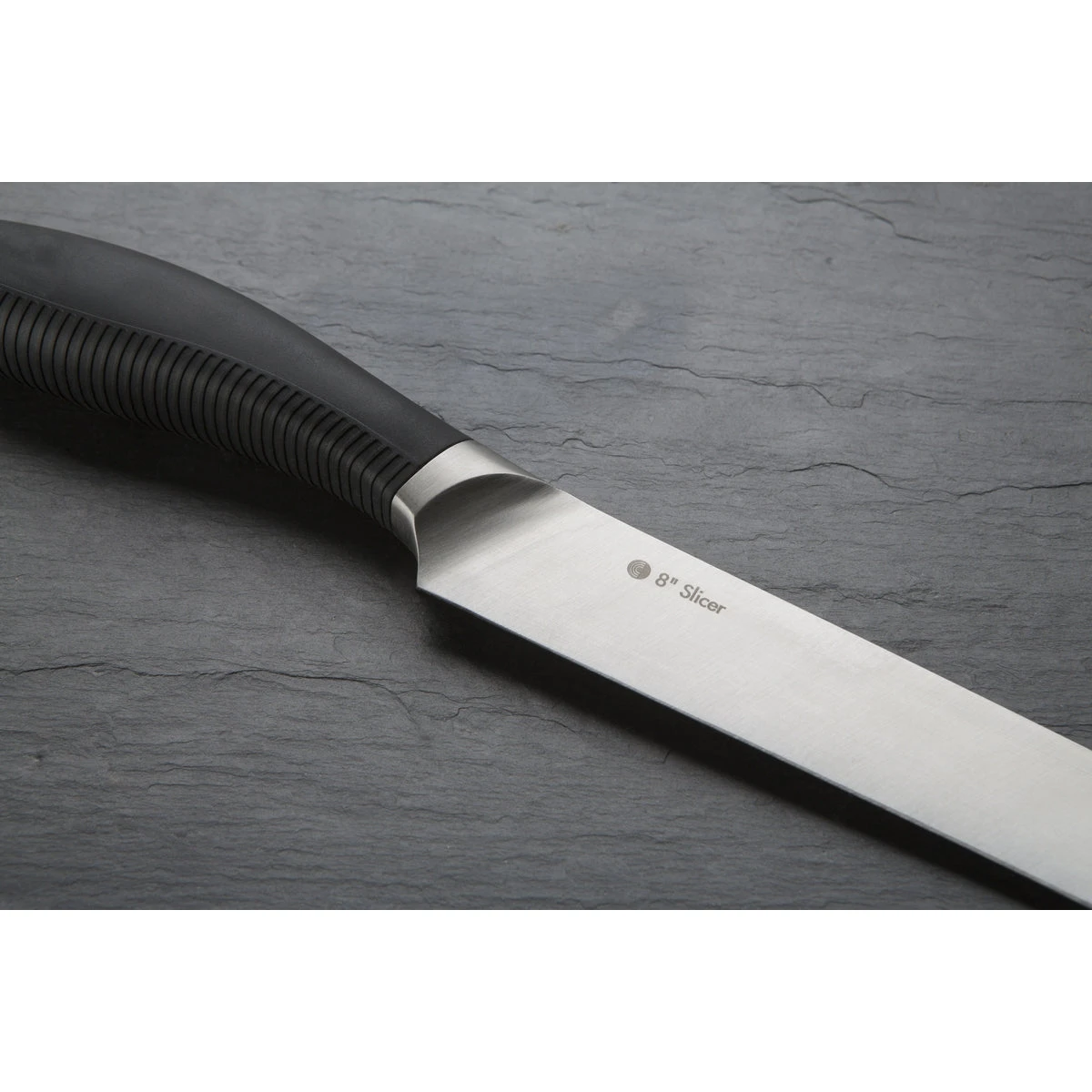 8″ Slicer knife -the ultimate tool for carving meats as the long blade produces thin, neat, evenly sized slices. Also ideal for cutting cakes and tackling larger fruits and vegetables.