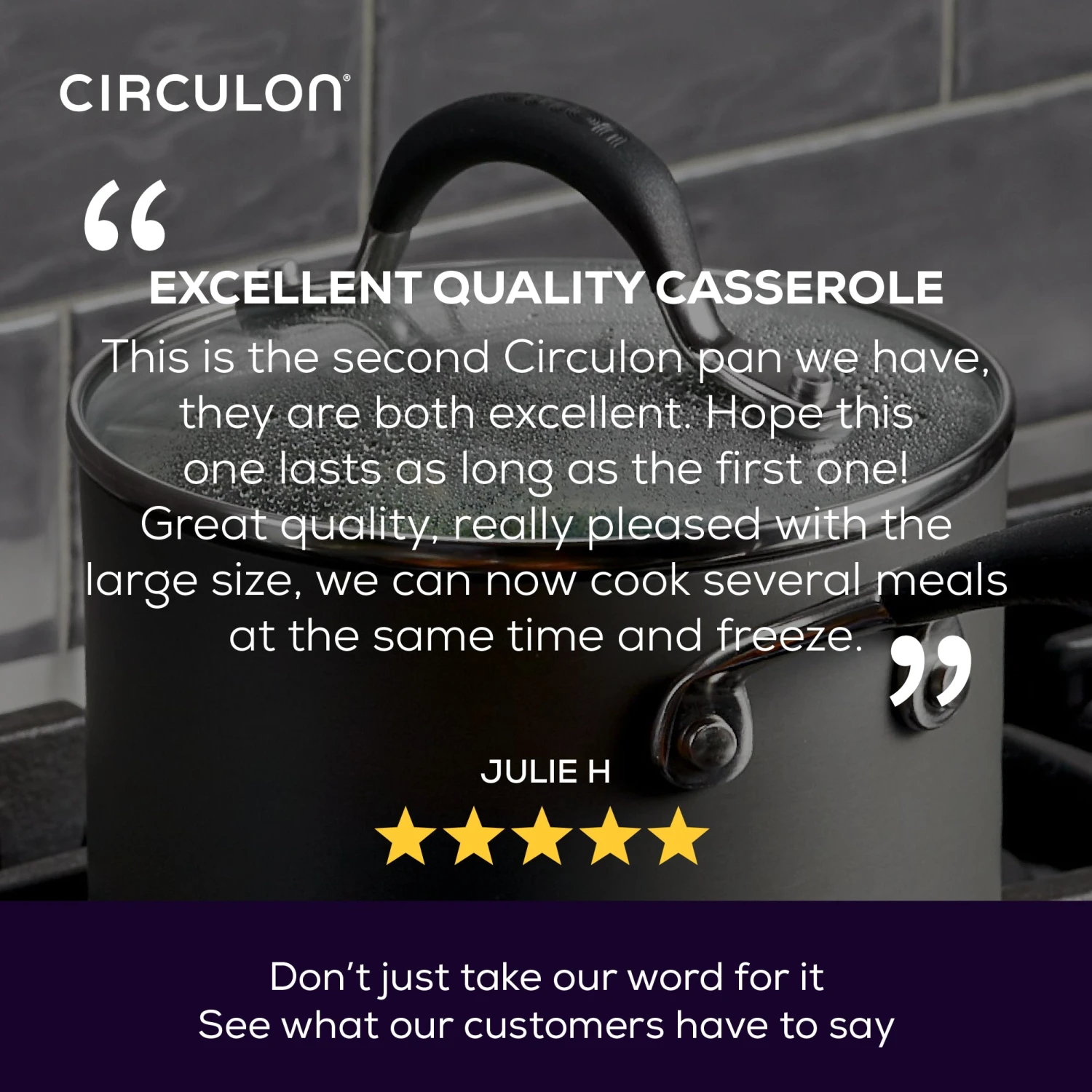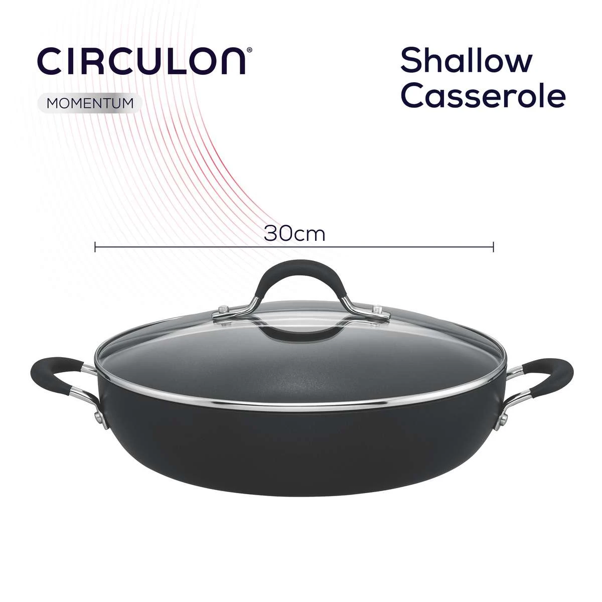 Introducing the Circulon Momentum Hard Anodized Family Casserole Dish & Lid – 30cm, where your food will not stick…guaranteed!
