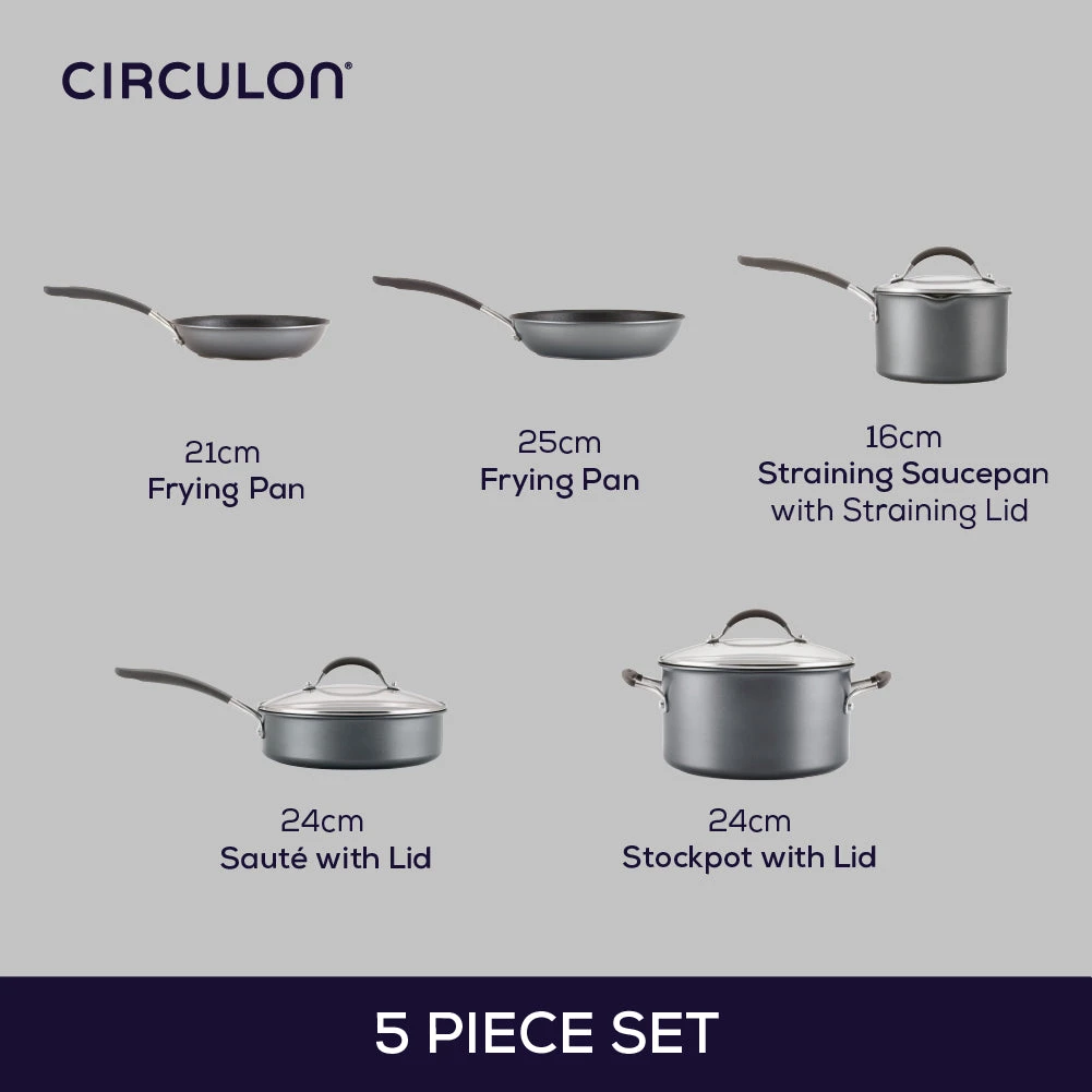This is the Complete ScratchDefense Extreme Non-Stick Pan Set from the range, suitable for Gas, Electric and Induction Hobs – including two Frying Pans (21cm & 25cm ⌀ Diameter), Straining Saucepan (16cm ⌀) with Straining Lid, Sauté Pan (24cm ⌀) with Lid and Stockpot (24cm ⌀) with Lid.