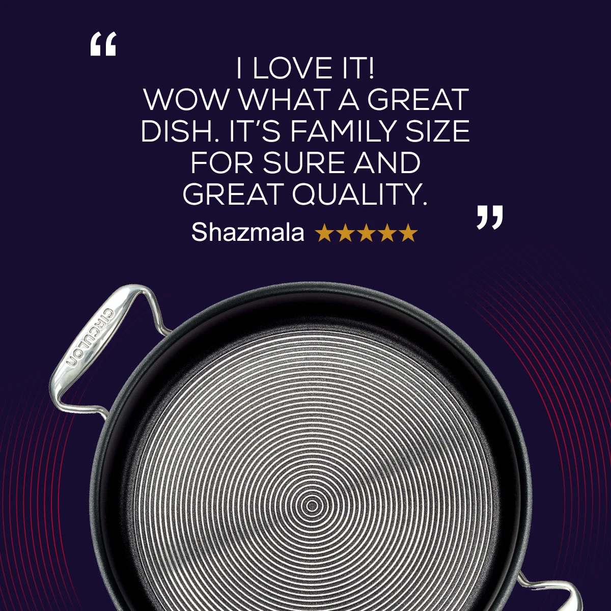 Circulon SteelShield™ hybrid non stick & stainless steel gives you the best of both worlds. This 30cm stainless steel non stick sauté pan with lid allows you to cook from scratch – without the scratches. Circulon’s steel peaks protect the non stick grooves, so you don’t have to worry about scratched non stick. Our tri-ply clad stainless steel non stick sauteuse has been carefully engineered for fearless cooks.
